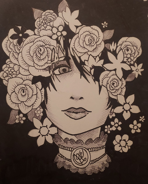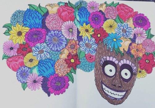 #traditionalart #portrait #handdrawn #originalcharacter #blackwoman #coloredpencils #flowers #inkdrawing #lady #pendrawing #afrohairstyle #blackwomanbeauty