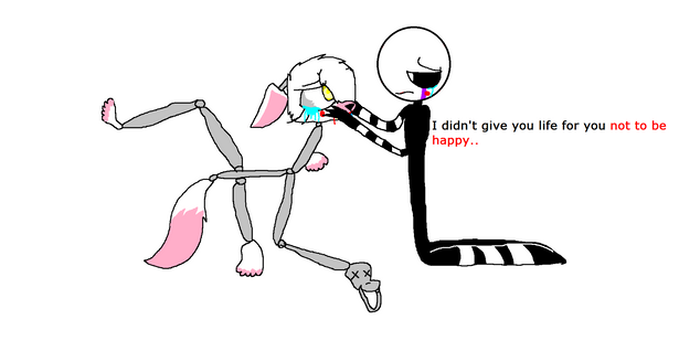 So.. yeah... Mangle is crying.. I don't know why....Can someone go and cheer her up?..