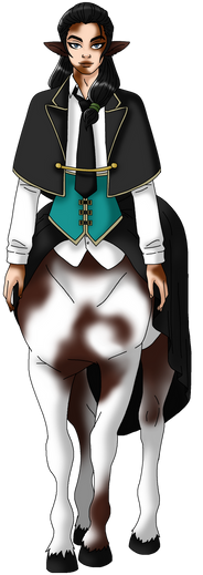 Zahel is a centaur.He doesn’t have the right arm, he is a gentleman and a fantastic fighter.