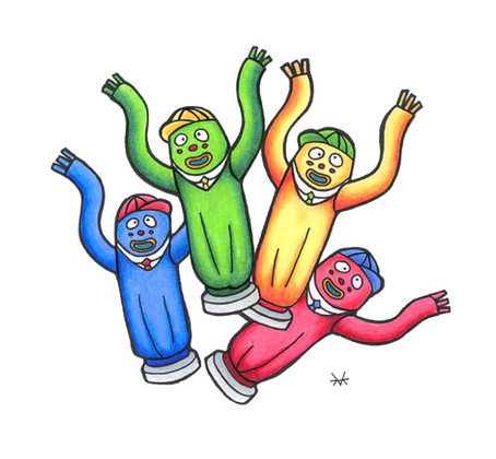Then It dawned on me to associate stamps and Wacky Waving Inflatable Arm Flailing Tube Men.