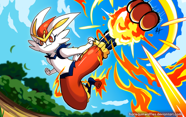 It's Cinderace from Pokemon, showing off a powerful kick!More art: