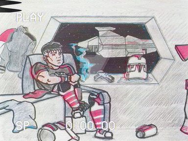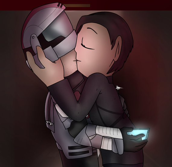 As promised, Hawke and his main (unbeknownst to EITHER of them) squeeze. Compared to Tal though, once the mechanics force-breached Hawke's cockpit, he was jettisoned with the internalized pressure (what was left of it) and floated outward: ruptured respirator tank and hastily patched wounds. He's caught in midair by "her" and the scene proceeds as you see. Hawke is unconscious, but recognizes the sensation of being held- but not like a hostage or dead-weight, but being embraced with emotion. Care.'Ah, so this must be death's embrace...?'