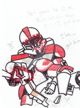 Precisely! Their flagship is a Venator-class so they landed in the main hangar (center line) and sealed it off afterward, that way even though his respirator is shot to shab, he's not dying but rather all the debris is just drifting with him. And RIGHT? One of my greatest weaknesses is drawing human likeness outside of armor, so I figured small steps and clear visors could help! Thanks for that!