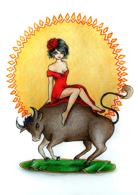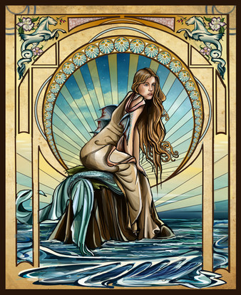 i love the circles in the background they remind me of the illustrations by alphonse mucha.