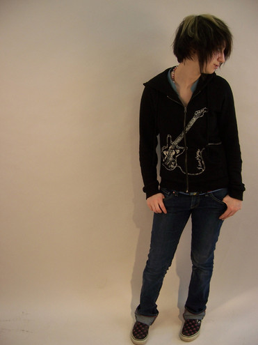 The wall is actually a feature wall in my room, and it's a really deep blue. A couple of tweaks in curves in photoshop and I ended up with this. I have a few more of me in front of that wall. Shall I use the same edit again?
