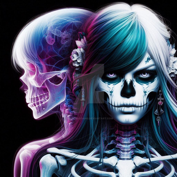 Inner Beauty- skeletons"Inner Beauty: A Collection of Artworks Featuring Beautiful Dancing Female Skeletons" celebrates the timeless elegance and grace of the human form through a unique lens. Within this collection, the ethereal beauty of dancing female skeletons is depicted with meticulous detail and artistic finesse.