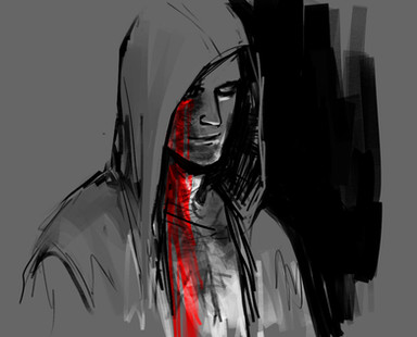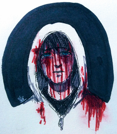 Most excellent work. The blood and shadow against the white hoodie really bring it together, especially around the mouth and eyes. Please do more!