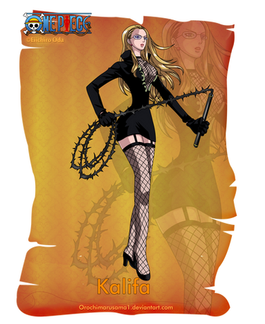 Kalifa was Iceburg's secretary and the only female member of CP9Kalifa is a slim woman with blue eyes and glasses. Like Kuro, she often pushes up her glasses. Her blonde hair was about shoulder length when she first infiltrated Water 7 and she grew it out over the years she spent undercover there. She kept it tied up in a bun as a secretary, but let it fall freely with a left sidelock when she was revealed to be an assassin.