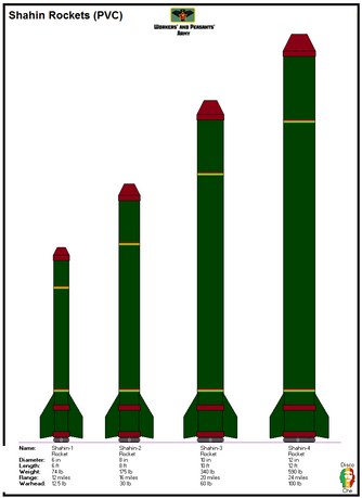 The Shahin is a conventional artillery rocket of Iranian origin that follows a ballistic trajectory. It was developed to provide large amounts of destructive power at medium ranges and at a low cost. The Shahin uses solid propellant and has seven nozzles!!!Related content