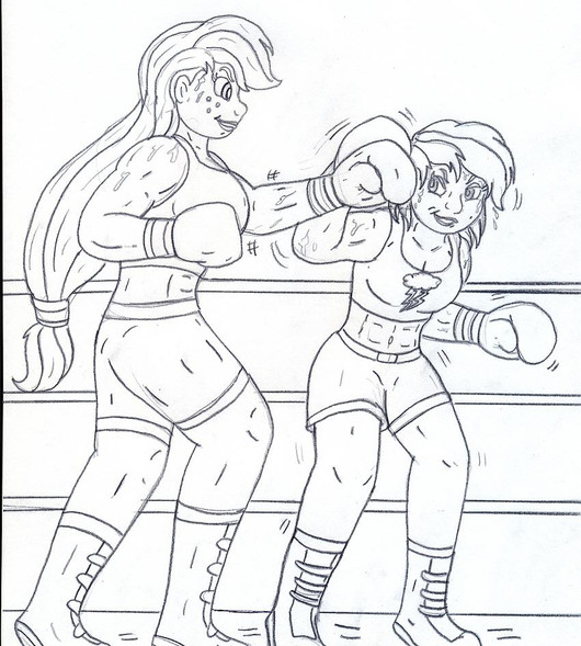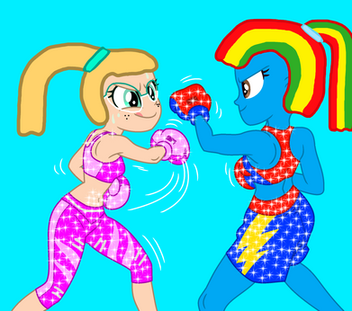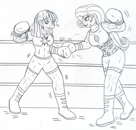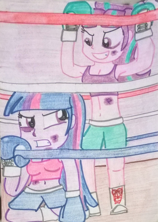 Twilight Sparkle and Celestia go back to the boxing portion of their match.