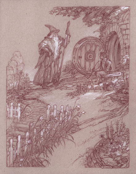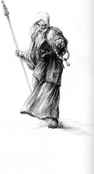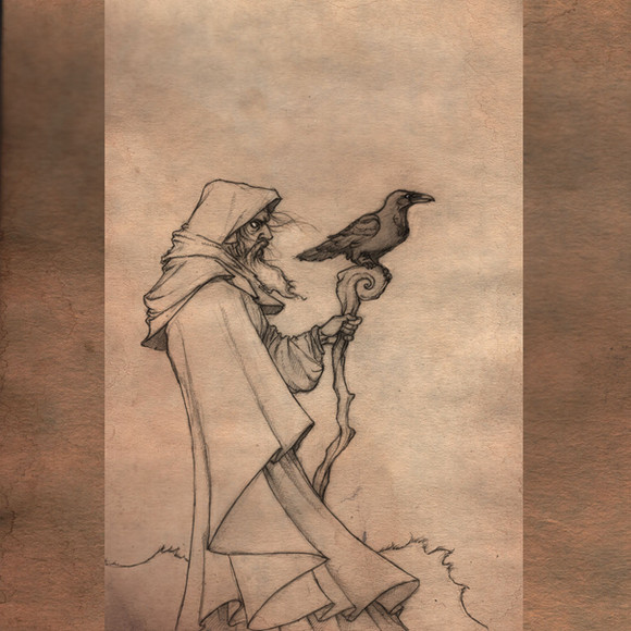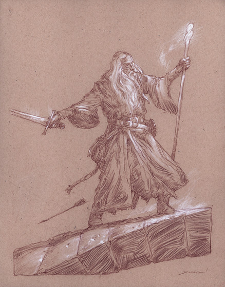 Love the sepia tone of this drawing.Β At least you didn't draw him with the conical hat and star-bespangled robe.Β He is more in the druid setting as much as a wizard.