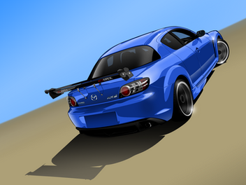 So here's something new for a change. As always I've got about 5 projects on the go at the same time. This project got finished first because it's a project of passion - I freaking love RX7sThe base is a screenshot from Need For Speed Carbon. The style is supposed to be similar to that of the classic cell-shading racing game Auto Modellista but with a more updated look.