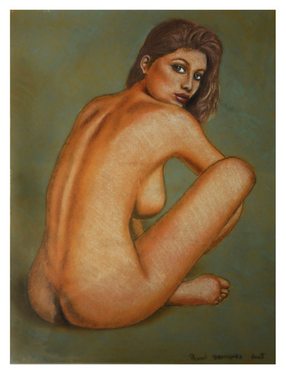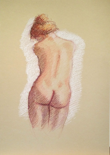 This is a pastel and water wash on hotpress watercolor paper. It was from the live model.Related content