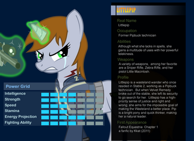 The character Littlepip is from the Fallout: Equestria universe and was created by Kkat