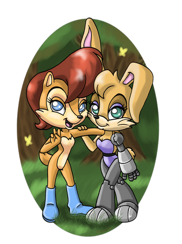 Hehe this is very cute, and creative. Nice work on them both. The flower streamers are especially cute. I also like Sally's ponytail, and Amy's glasses.