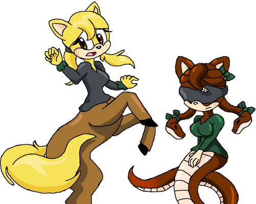 You do a great job of pulling the designs off. Not only do you cleverly use "My Little Pony"-esque details to give the horse parts that good balance between real and cartoony, but the actual looks you give each girl fits their new bodies so nicely; Sal's hairstyle, Amy's glasses, the flowers (eeeeeeee the flowers <3)...it all works together to make these adorable, wonderful designs that just steal your heart. Lovely, lovely stuff.
