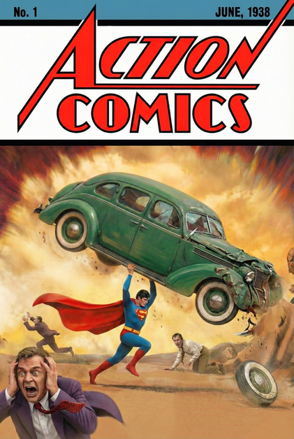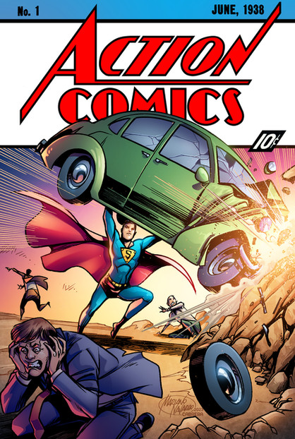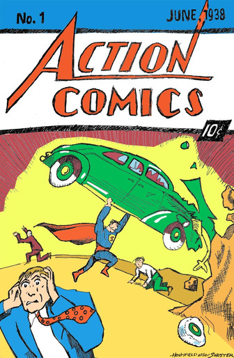 This was done as a Christmas gift for my dad. He's been a fan of Superman since he was a kid, so this just kinda seemed like a natural choice.Basically, I decided to do a straight-forward recreation of Action Comics #1 (the first appearance of Superman). But I was working with a specific frame size, so I scrunched the title a bit. Other than that, I tried to get everything as accurate as possible. But since paint isn't my medium of choice (as you can tell from this scan, I'm not very good with it), some of the image suffers as a result. Still, my dad was stoked by it, so that's all I need