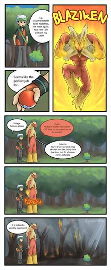 If that were MY Blaziken in that kind of situation, I'd want it to hug me to warm me up. Maybe even a hugGLE. Just sayin'. (although, that'd be more likely for me if that were a charizard, LOL)