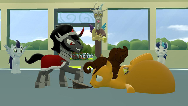 Cadance has taken it upon herself to educate other aspiring girls who want to use an Esme Suit. How to operate it, how to keep it in good shape, all the different variants...Scootaloo seems interested, Apple Bloom looks like she's seen it all before, but Sweetie Belle's obsessed with it!