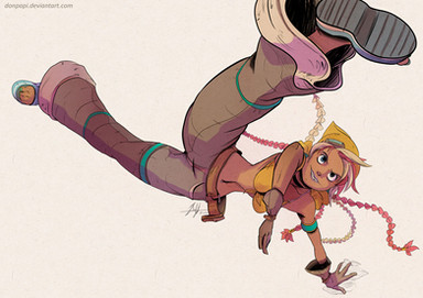 Me gusta mucho la pose y el coloreado. La chica luce bien en tu traco, aunque no sé como va en el original, pero no deja de gustarme