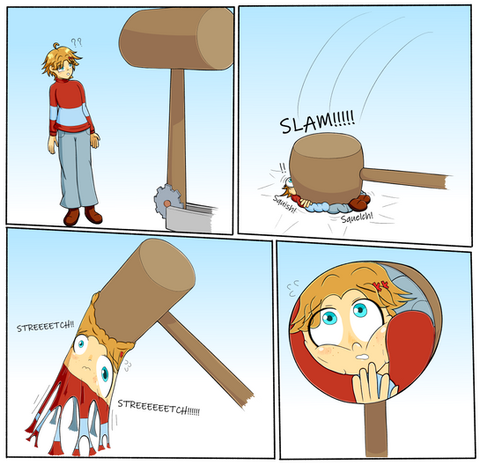 The winner gets a special surprise. A surprise pinata transformation, and filled with candy too. Only now she's got to evade all the other kids as they take turns to run around the garden blindfolded, swishing the bat.Commission priceΒ $63.20USD with 20% Patron discount. (from $79)