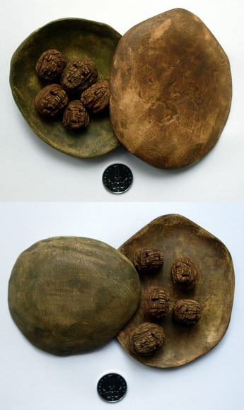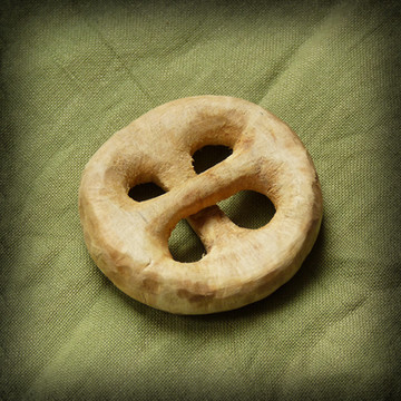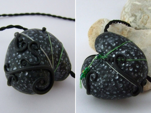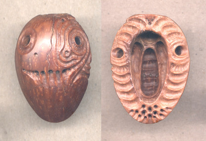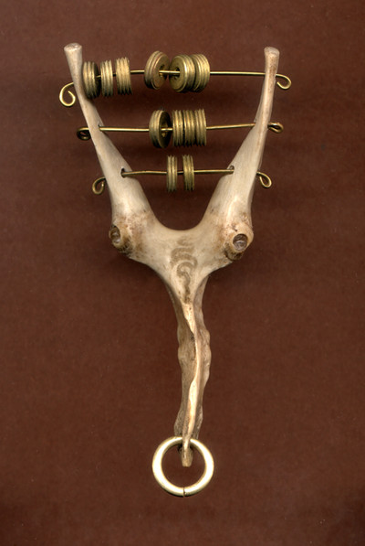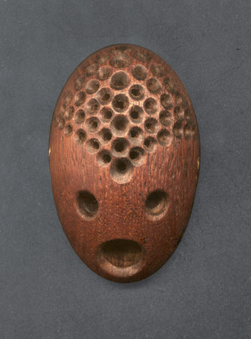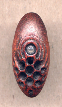 Necklace made from a nice piece of fine-grained wood burl (cypress, I think) and beads of horn and tropical woods, all natural colors.View of the back: