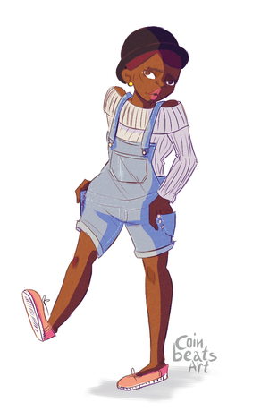 #choker #curlyhair #darkskin #design #dyedhair #fingerlessgloves #fluffyhair #overalls #partial #practice #stockings #yellow #designpractice #partialbody #darkskinnedgirl