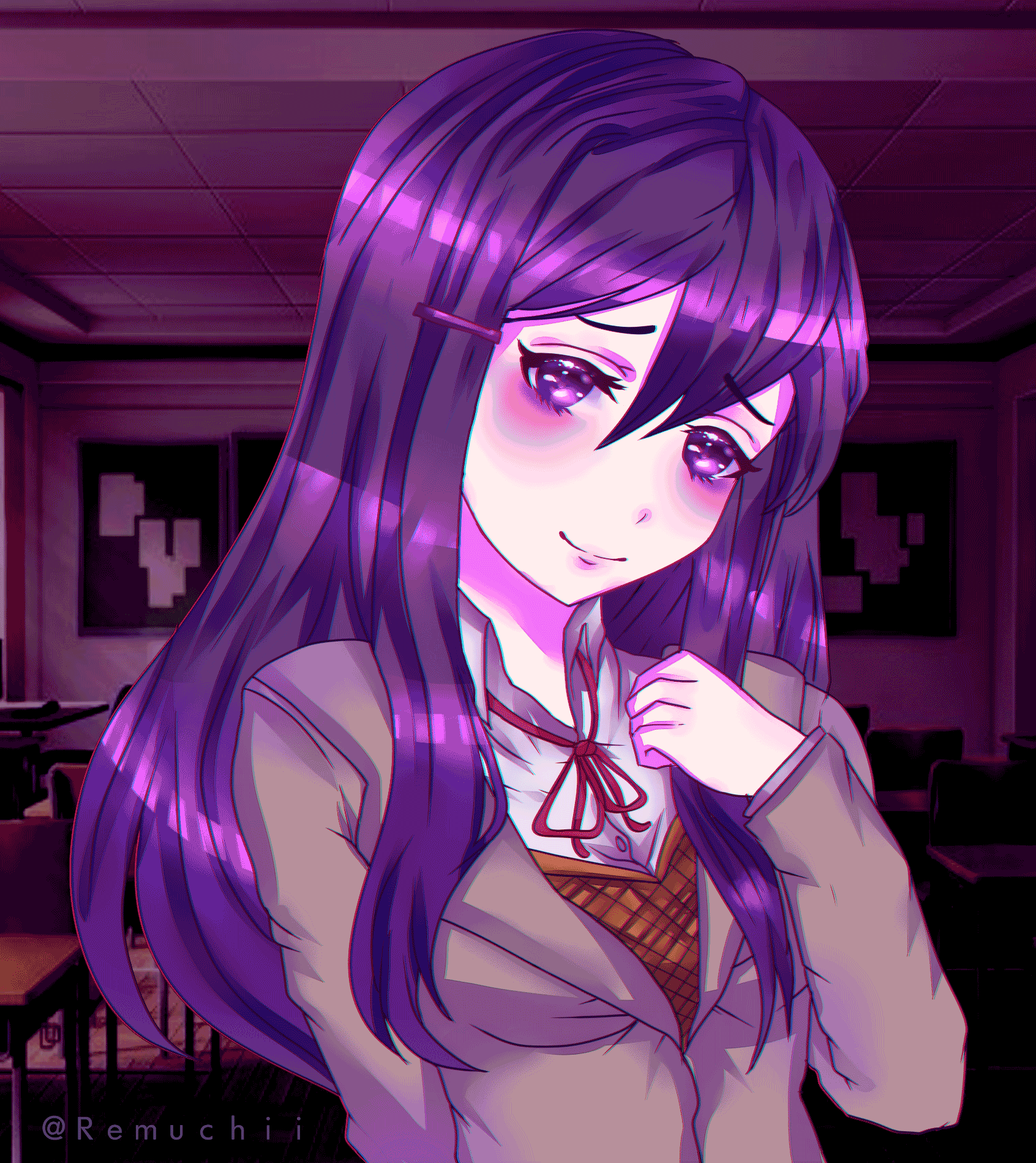 Yuri from the game Doki Doki Literature Club.This game had me SHOOKETH.