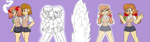 This is a very amazing commission! Seeing a commission ordered by yanderlover makes me happy. They have also commissioned art from me as well in fact their first commission from me involved zero two and monika. Moving along this is an excellent fusion art and I hope I get to see more from you.