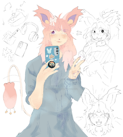 This is like a week and a half old π but I kinda forgot to post it on da lol-Lizz is a PokΓ©mon oc I made ! She's not my pokesona, but definitely a fav of mine ! She's a Leafeon and Espeon mix cause yes!