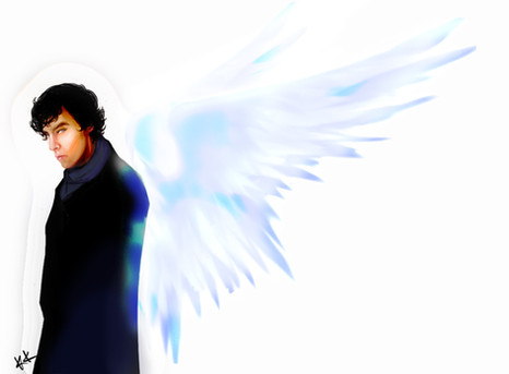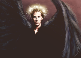 Benedict Cumberbatch as the Angel Islington, again. I basically wanted to draw what I imagined in my head pertaining to the text above (And I've been wanting to draw that ref image for what feels like a gajillion years). It's also nice to compare it to the piece I did last year; I can definitely see some improvement. And some day I'll stop being lazy with wings. But that day is not this day.