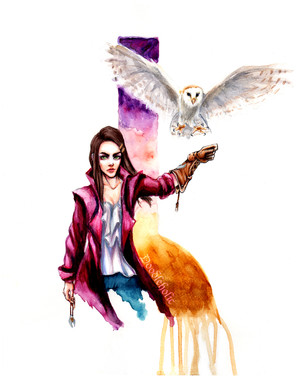 Materials: Copic Multiliners and markers, Prismacolor colored pencils, white gel pen, gold leaf, and Photoshop CS5