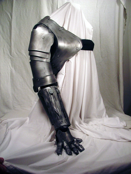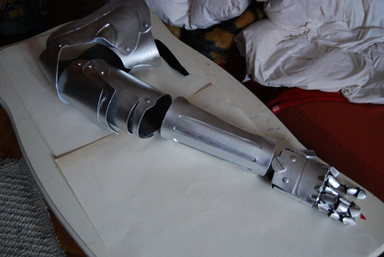 I'm actually working on the full arm right now, and all I can say is praise the Lord for hot glue guns and metallic silver craft foam paint! XD