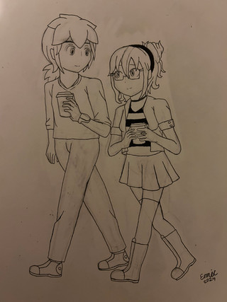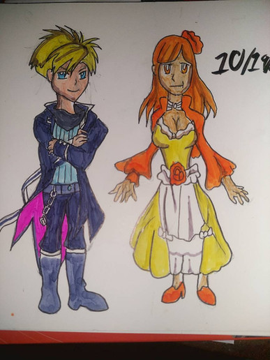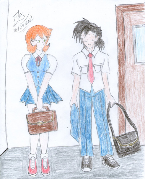 Two of my OC's Anne and Steve hanging out in some random blank space. (By their names, it should be pretty obvious who's who; no traps hereThis drawing was actually just an excuse to draw their original designs again.