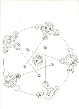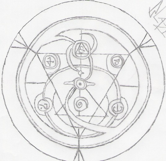 A personnal tansmutation circle. It's based on FMA's circles but i didn't picks some details here or here to make it, it's completely original ^^I'm not sure about Latin sentences, they may be wrong^^