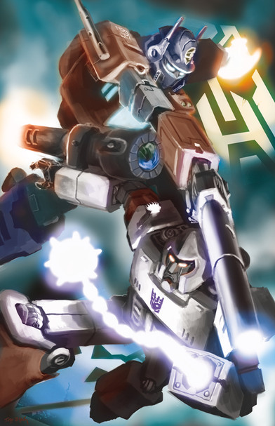 Amazing work , blows the mind , detail is well thought out and both optimus and Jazz look amazing if this was a print I would buy it and Hang it on my wall.