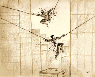 ...This opens an ENTIRE new realm of cracktastic crossovers. I kinda like how Spidey's pose turned out.Doodled at work during downtime.