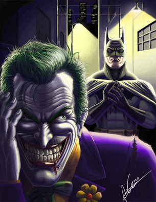 Β Oh Joker, even when he's gonna get the beat down of his life, he can't control himself. You've captured these two fantastically, and the environment is so gritty, I loves it!!! Your style is worthy of it's own comic book! Β Glorious job!