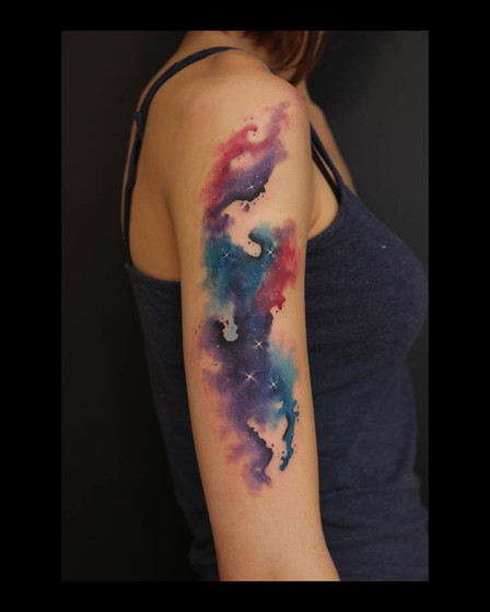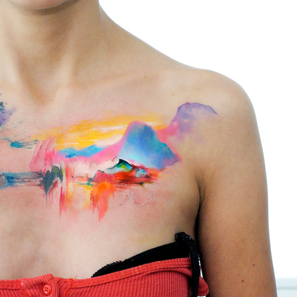 I really like the brilliant colors.Β Your watercolor tattoos are very beautiful!