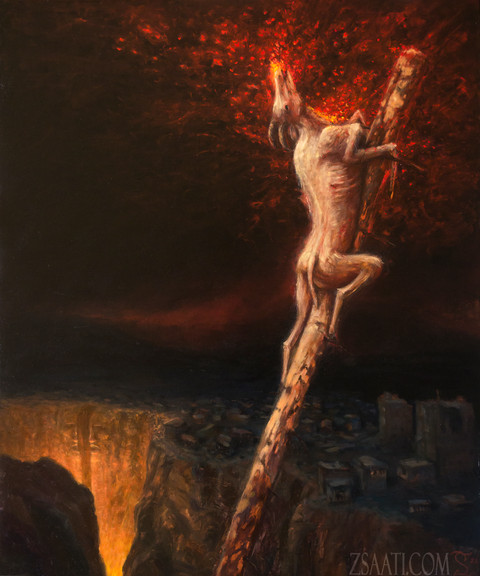 An untitled oil painting I recently finished. This one was a bit of an experiment. Usually I plan the painting in advance with an idea and many sketches. With this one I went wherever it took me, starting out abstract and building from there.www.zsaati.com/