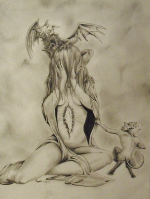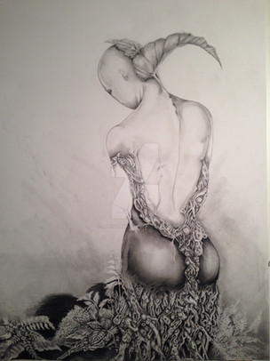 Rear view of a woman who is about to be engulfed literally in sexual desire.Related content