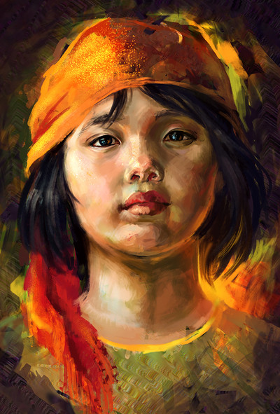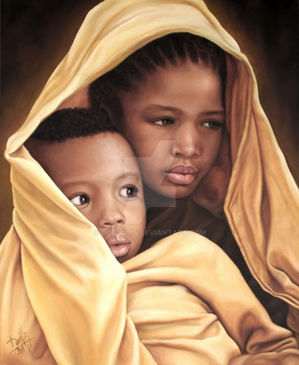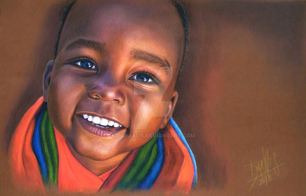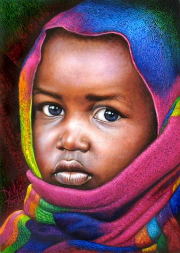 Nice work. I will only say this because it irks me in a way, but I'd really love to see a child with dark eyes. These colors are so rare that it doesn't tend to depict an African child in the most realistic way.