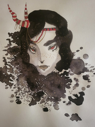 This is very interesting design for a devil; I really like the use of coffee brown for this character (I especially, like it use in her horns and pipe as well as her hair); Great job