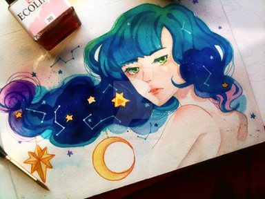 #longhair #luna #mangagirl #moon #night #selene #stars #galactic #galaxy #goddess #moonlight #nightsky #watercolour