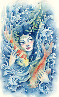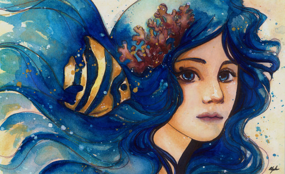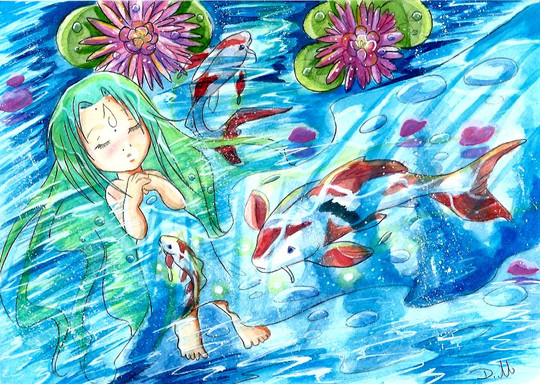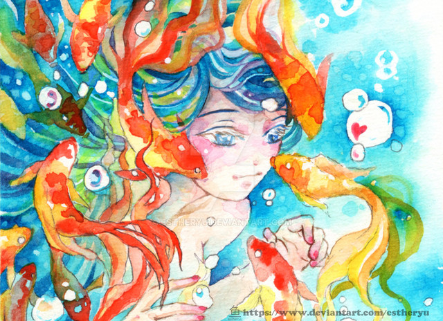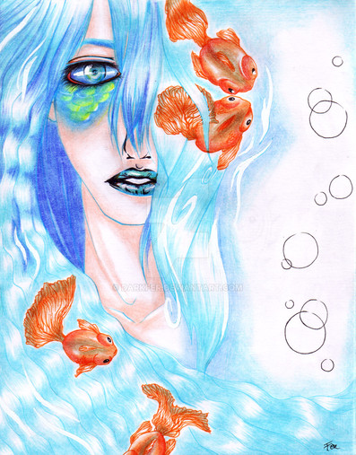 I like how the fishes are hiding in her hair. I've never seen someone do that before. Awesome originality!