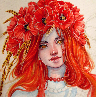 This is absolutely gorgeous. The colors are so bright and her expression is so curious. I just adore this.
