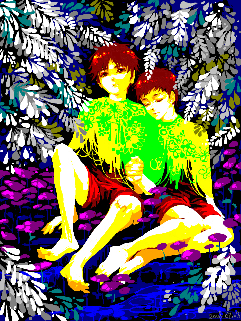 Beautiful! The atmosphere, the colors, the lighting, everything is done so wonderfully. I love their happy and peaceful expressions, and you drew the guys so cute and well. Excellent job! ^^