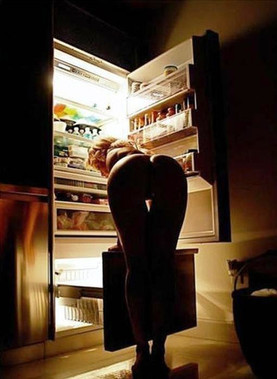 Hmm I don't know what's more tempting the beautiful lady in the fridge or the snacks in the fridge.