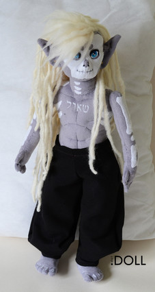 The doll in question is my OC Paolini. He's gray because he's a cave-elf. Deal. He's not complete yet, but more pics of his WIPiness can be seen on my tumblr, along with his tiny cat: