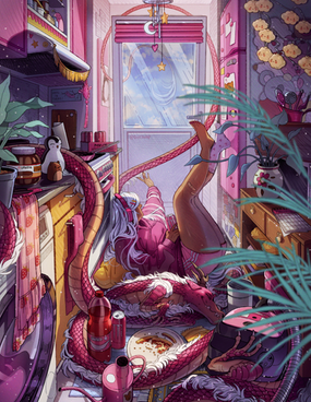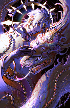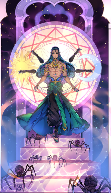 As of today it has been a WHOLE DECADE since I created my original characters, Aka & Rasha. So of course I had to make a little something for them <3instead of creating a single piece with both of them like previous years, I decided to make one individual piece for each, to show off their opposing energies and vibes. I see them kind of like the moon/sun & night/day, albeit pretty cliche ππ